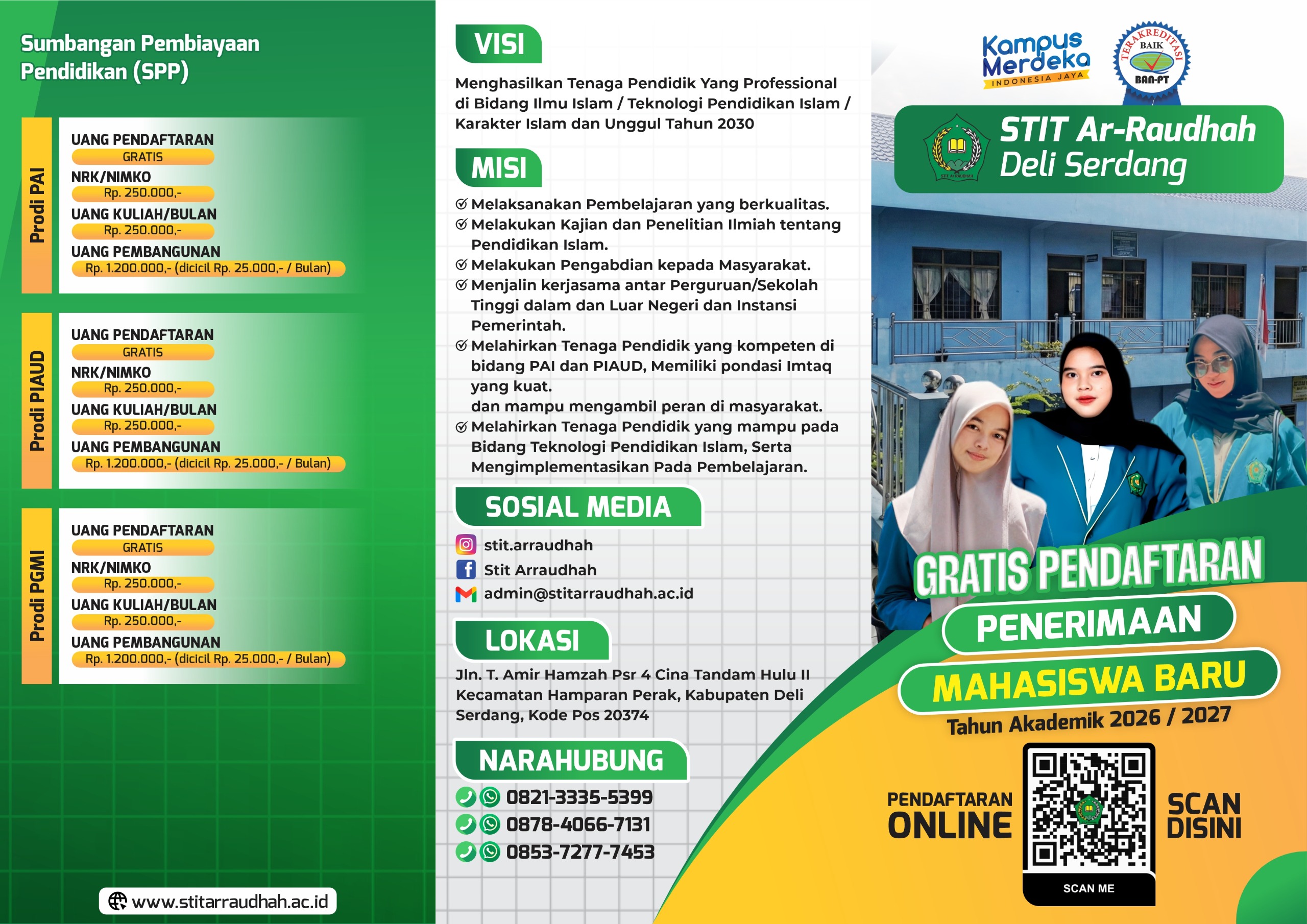 STIT Ar-Raudhah merupakan perguruan tinggi yang telah memperoleh status TERAKREDITASI BAIK sebagai bentuk pengakuan atas mutu akademik dan tata kelola institusi.